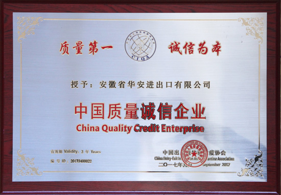 On October 20, 2017, the Anhui Entry-Exit Inspection and Quarantine Association held the 3rd Council Meeting and the commendation ceremony for the “China Quality and Integrity Enterprise” in Anhui. A.H.A was honored with the title of “2017 China Quality and Integrity Enterprise.” The President of the company, Chairman Liang Qing was invited to attend the awarding ceremony.